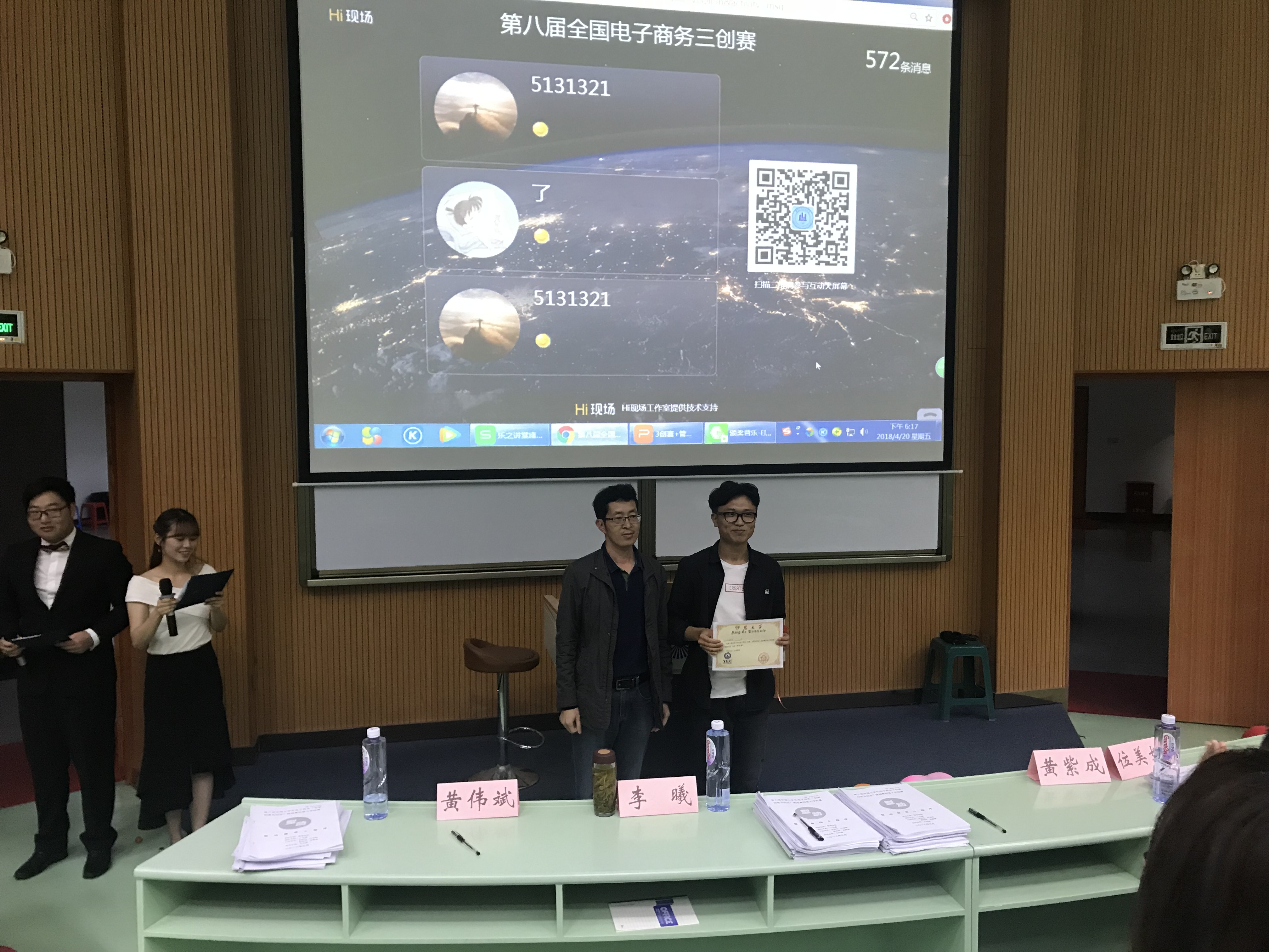 4月20日下午,由beat365官方网站主办,beat365官网承办的第八届全国电子商务“创新、创意及创业”挑战赛beat365官方网站校赛于beat365官方网站第一教学区和昌教学楼乐之讲堂、致知讲堂两个赛场同时进行。本次比赛邀请到教务部郑秋莲副主任担任嘉宾,工程技术学院副院长兼党总支书记曾凤生以及beat365官方网站常务副院长兼党总支书记许惠铭、副院长庄海刚等老师担任本次比赛的评委。