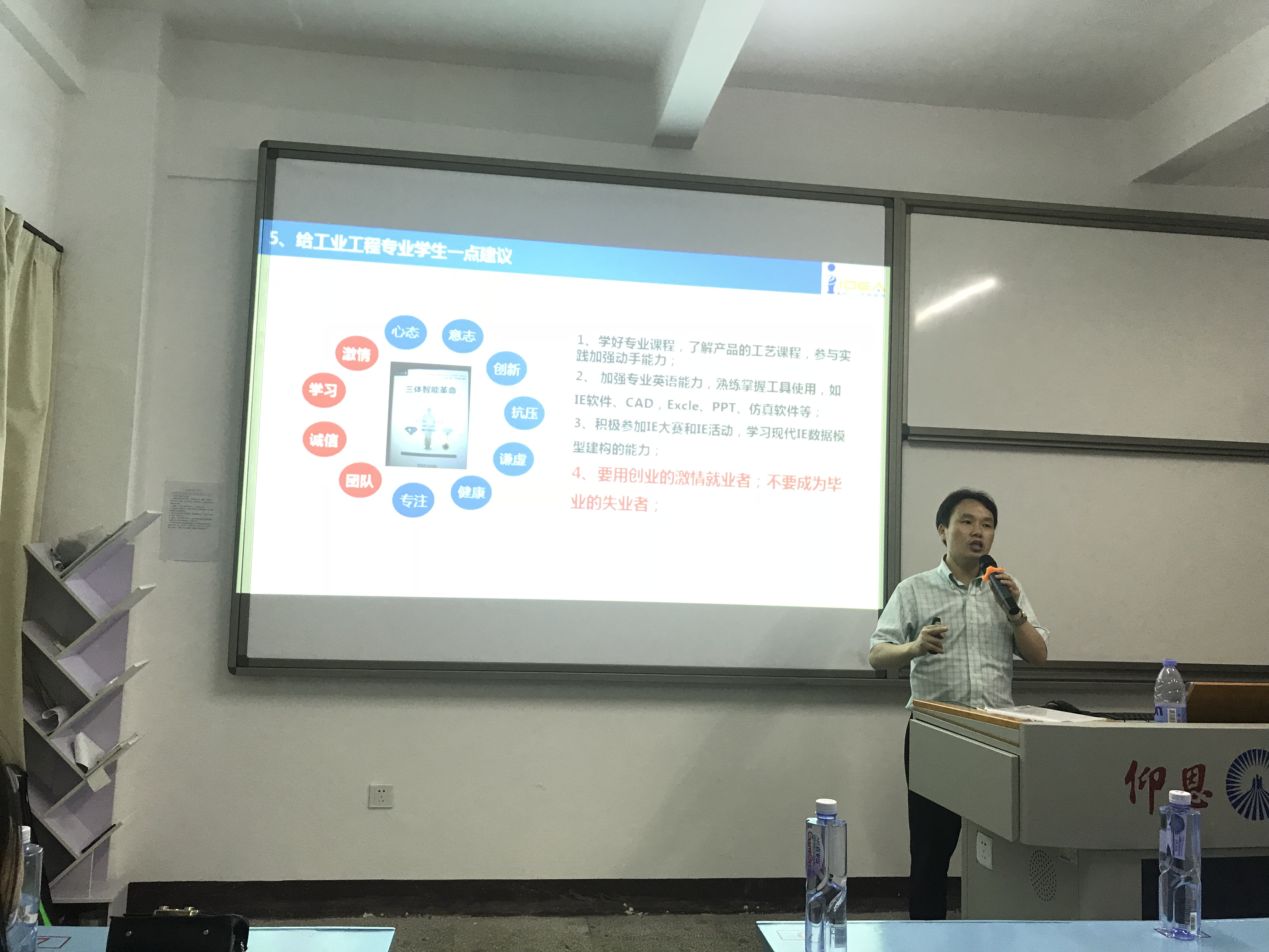 讲座首先围绕在智慧时代工业工程专业能力与创新创业素质如何培养方向展开,并结合应用案例讲述了新时代国家经济社会发展对工业工程专业人才的需要、工业工程专业未来的发展方向等内容。而后,李晚华通过分享自己的学习成长及创业经历,向同学们介绍了专业知识学习、能力培养与素质养成的方法与途径。