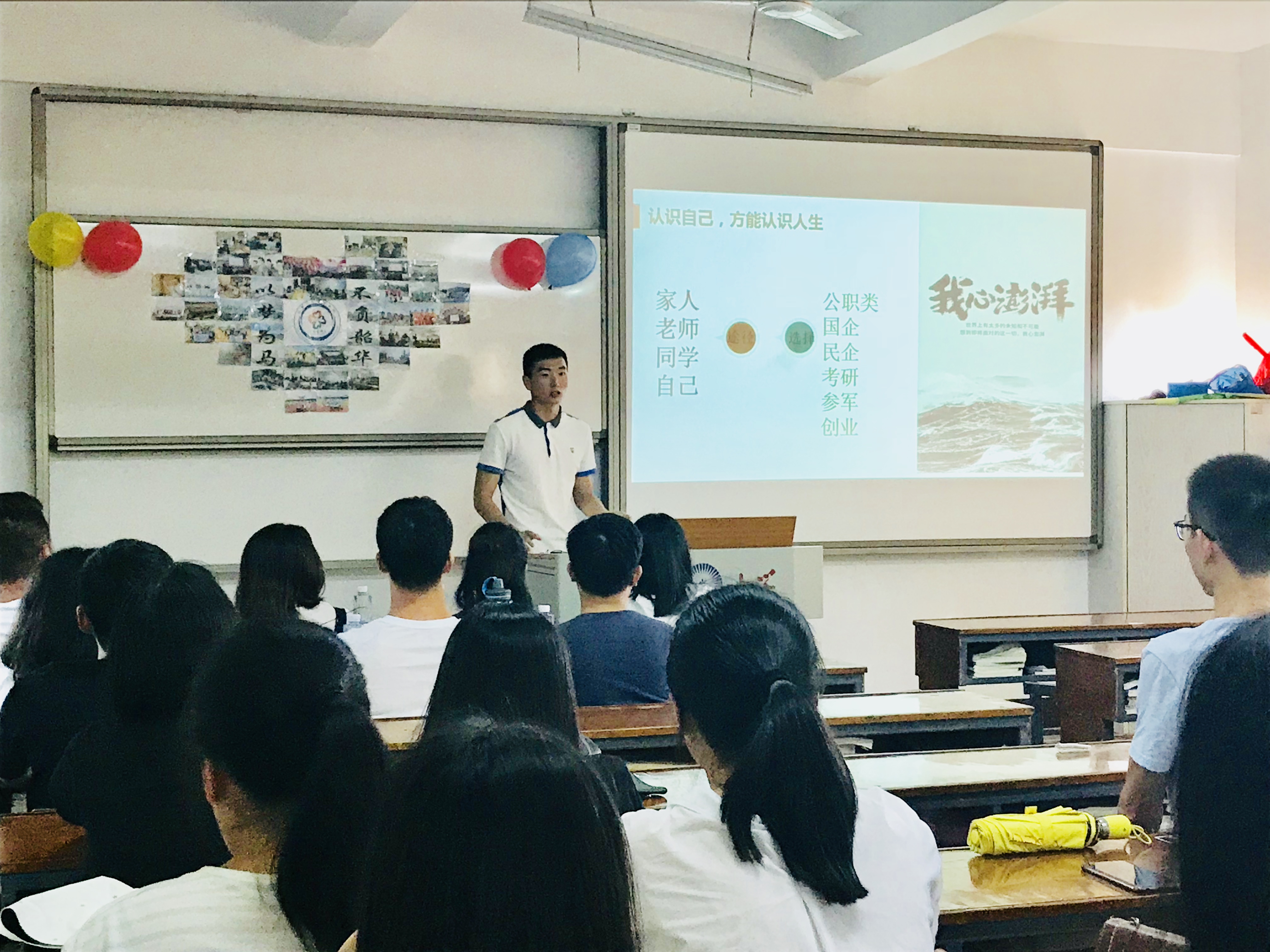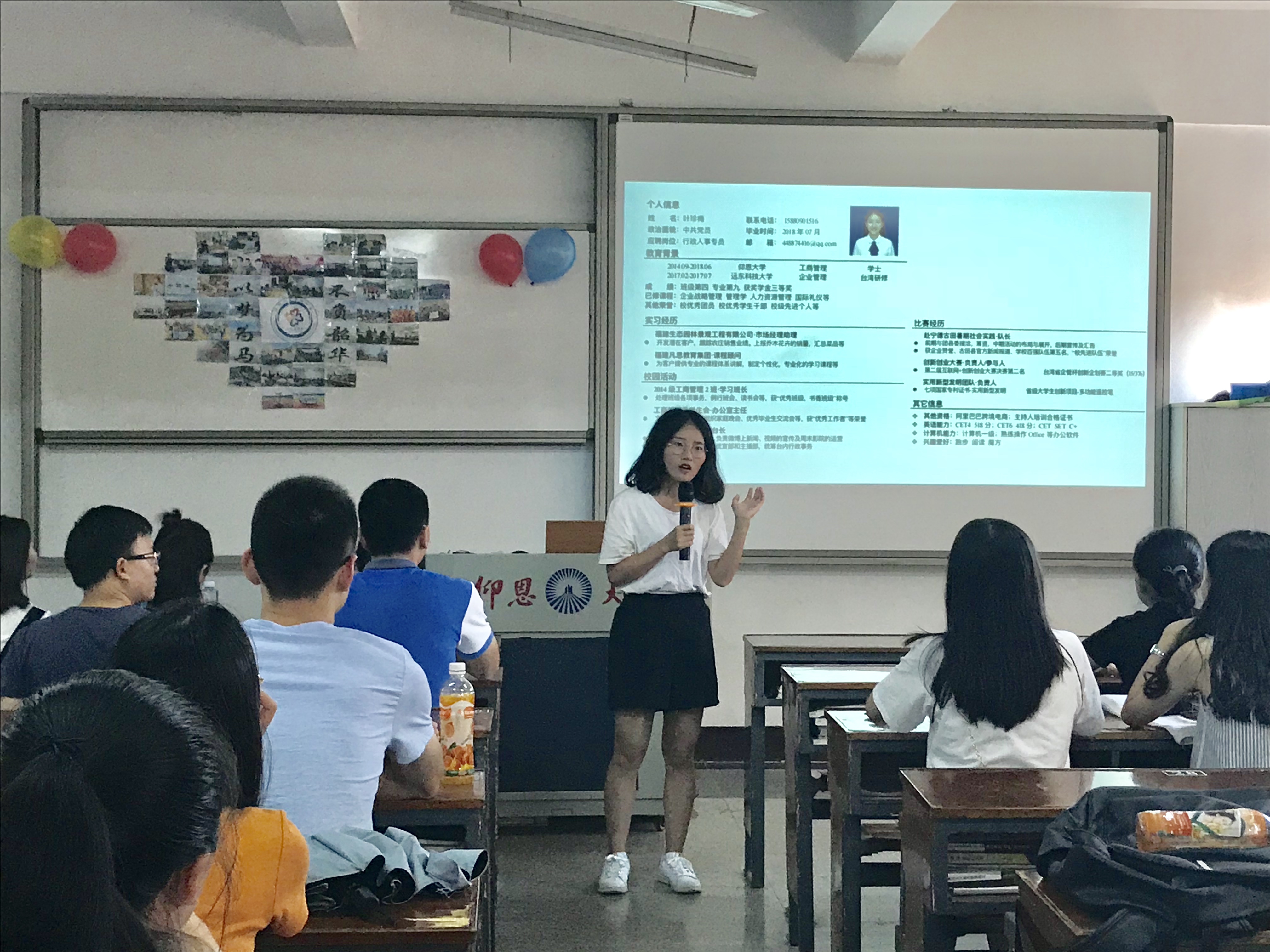 在经验交流会中,7位优秀毕业学生代表围绕校内工作学习生活、校外实习工作经历分享他们的宝贵经验。杨贵宝同学介绍了他准备银行招聘考试的笔试面试经验;林华南同学讲述了大学四年时光如何从迷茫到奋发的过程,如何扬长避短找到自己的优势;沈捷超同学分享了行测备考应试技巧;叶珍梅同学建议同学们珍惜校园招聘的机会,提前准备好面试;温丽杭、林娇同学向大家分享了实习期间和团学工作的经验;王尧辉同学重点分享了自己的创业经历,建议在场学弟学妹以积极的心态去学习,在实际工作中要做到多问、多看、多积累,让自己成为有竞争力的人。