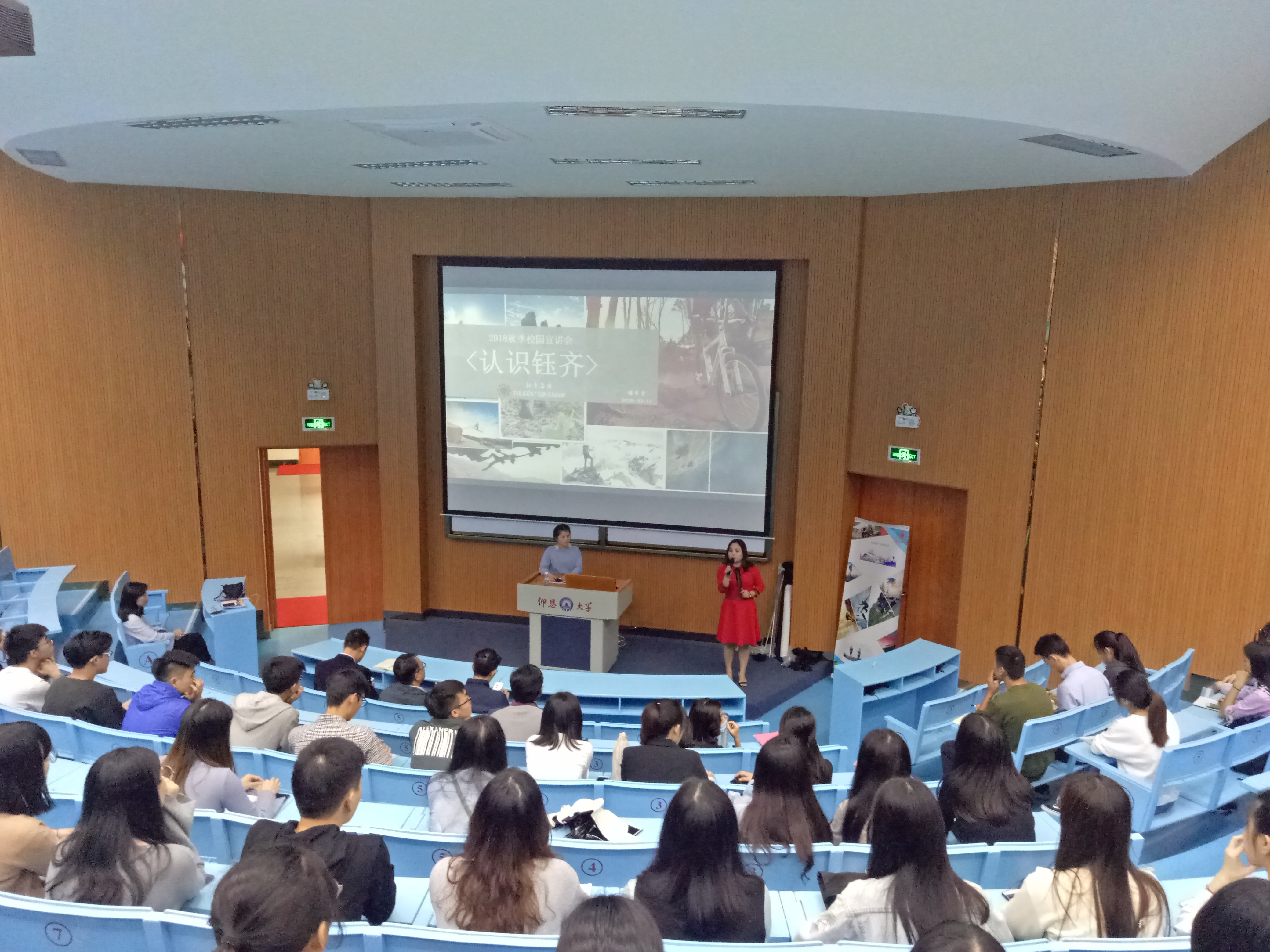 宣讲会现场 宣讲会由钰齐集团可持续发展部协理谭平兰女士担任主讲,她从企业文化、人才战略、“钰齐订单班”人才培养模式等几个方面作了介绍。期间,同学们积极向福建和诚鞋业相关负责人现场咨询。