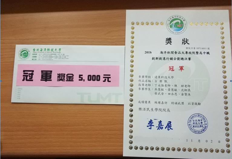 周伟斌、陈天元、谢海钊、蔡俊杰等四人获得季军 决赛异常激烈,beat365官网学生吴慧敏、黄慧敏、沈柳燕等三人精神饱满,言辞流利,凭借专业度、内容的丰富性以及创新度折桂全台海洋休闲食品创新创意行销企划竞赛总决赛,荣获冠军奖状及奖金5000台币;周伟斌、陈天元、谢海钊、蔡俊杰等四人获得季军。
