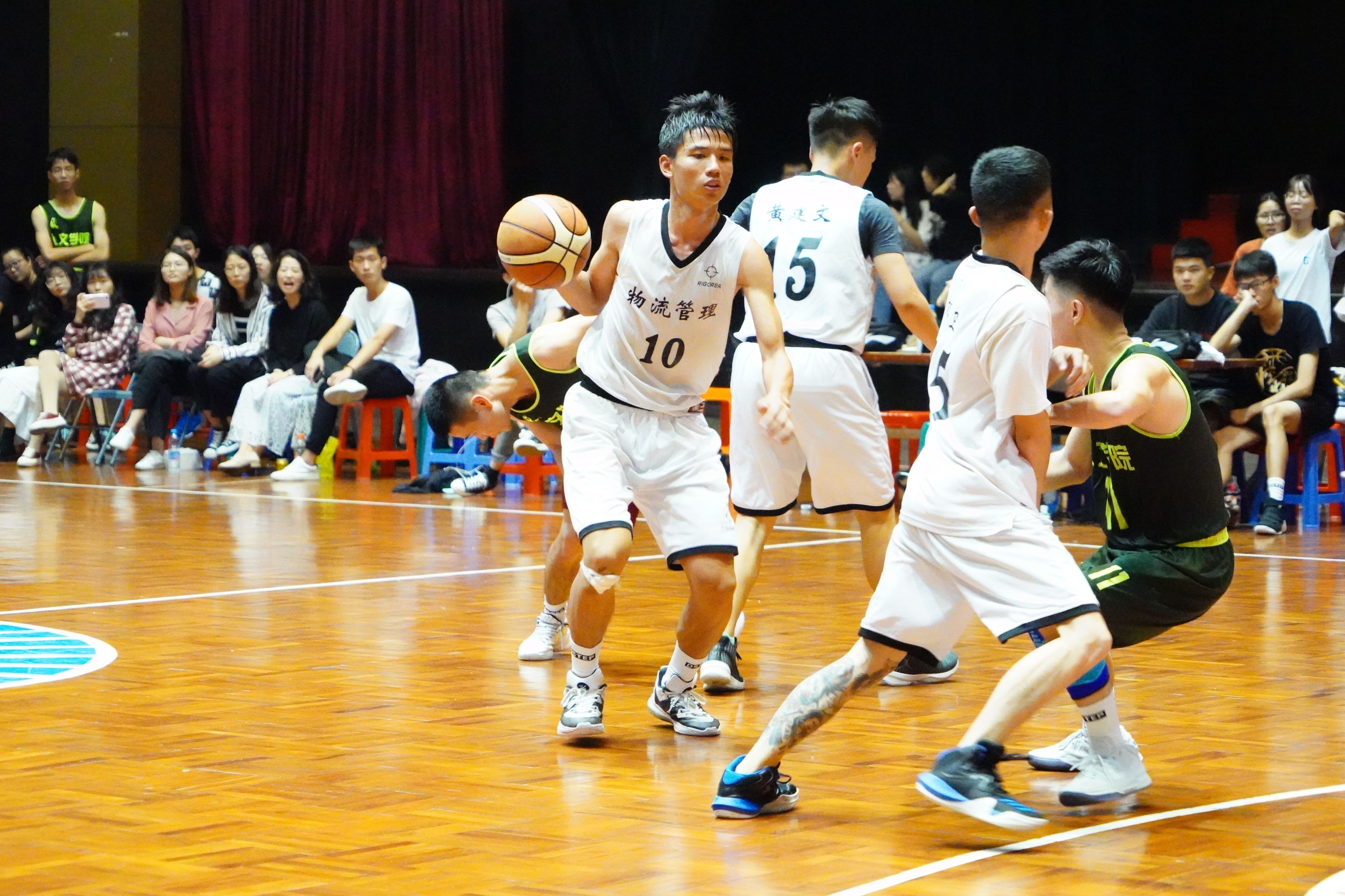进击的物流管理系球员 男子篮球比赛秉持着友谊第一、比赛第二的原则,旨在提高广大学生参与体育运动的热情,在比赛中增强友谊,同时培养团结协作的精神。(杜心田、王智斌、林雯/文 陈峰/图)