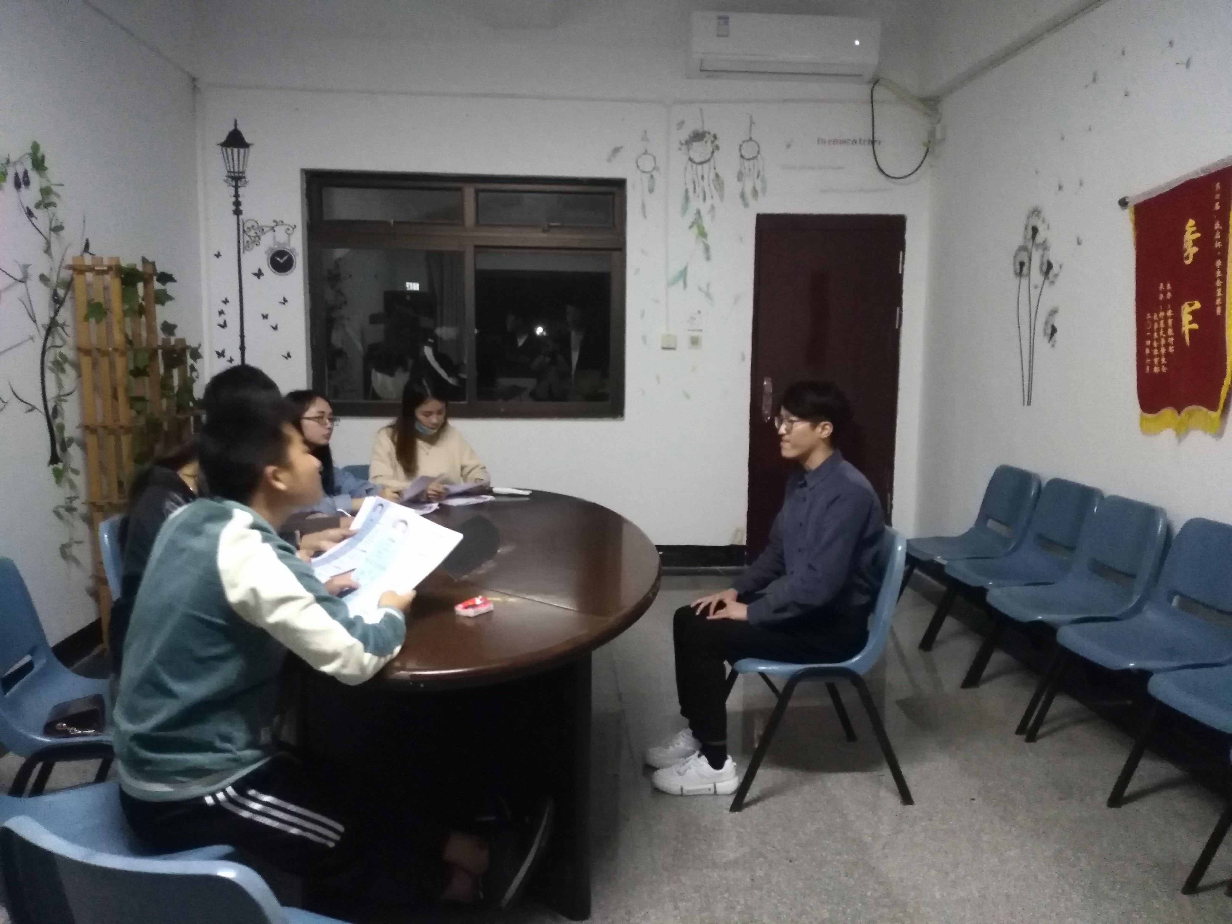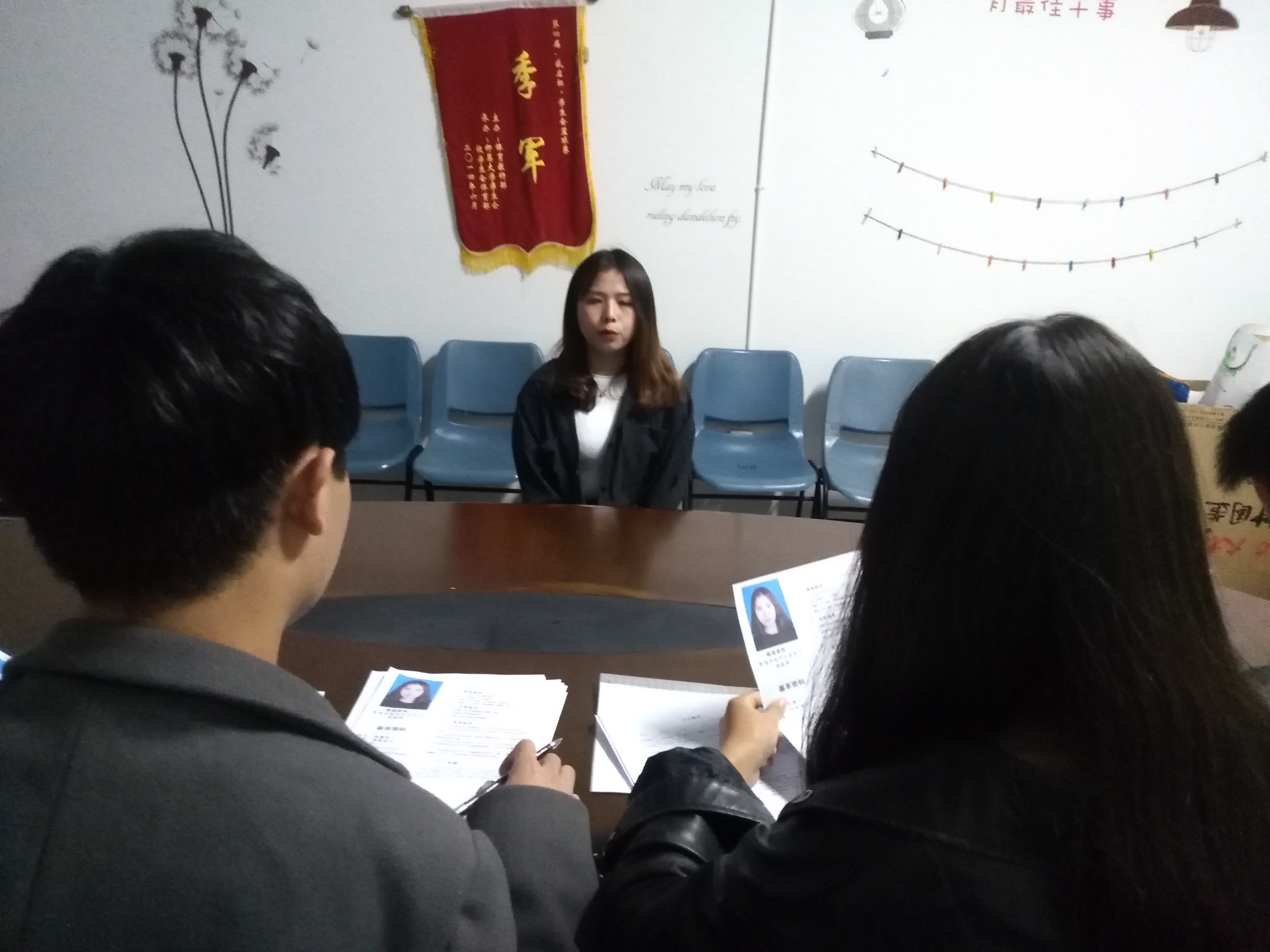 11月29日晚,beat365官网学生会干部换届面试在第一教学区共和楼501院学生会办公室举行。此次面试的评委由第20届和第21届(代理)beat365官方网站学生会主席团组成。