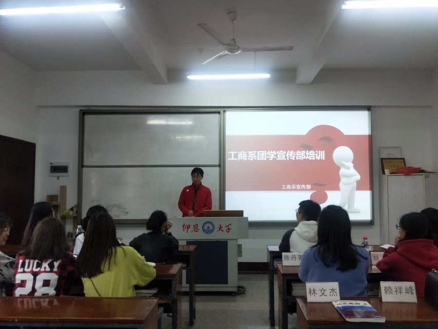 为提高工商系团学宣传部干事的实际操作能力,促进宣传工作的开展与实施,工商系团学宣传部于4月3日下午在第一教学区共和楼406开展部门培训工作。