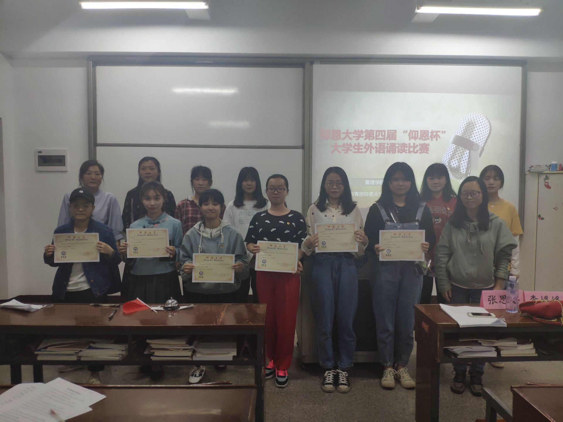 4月18日晚,第四届“仰恩杯”大学生外语诵读比赛beat365官方网站复赛在第一教学区共和楼323举行。复赛由beat365官网团委主办,各系团总支协办,本次比赛邀请了外国语学院的张思思老师和李媛媛老师担任评委。