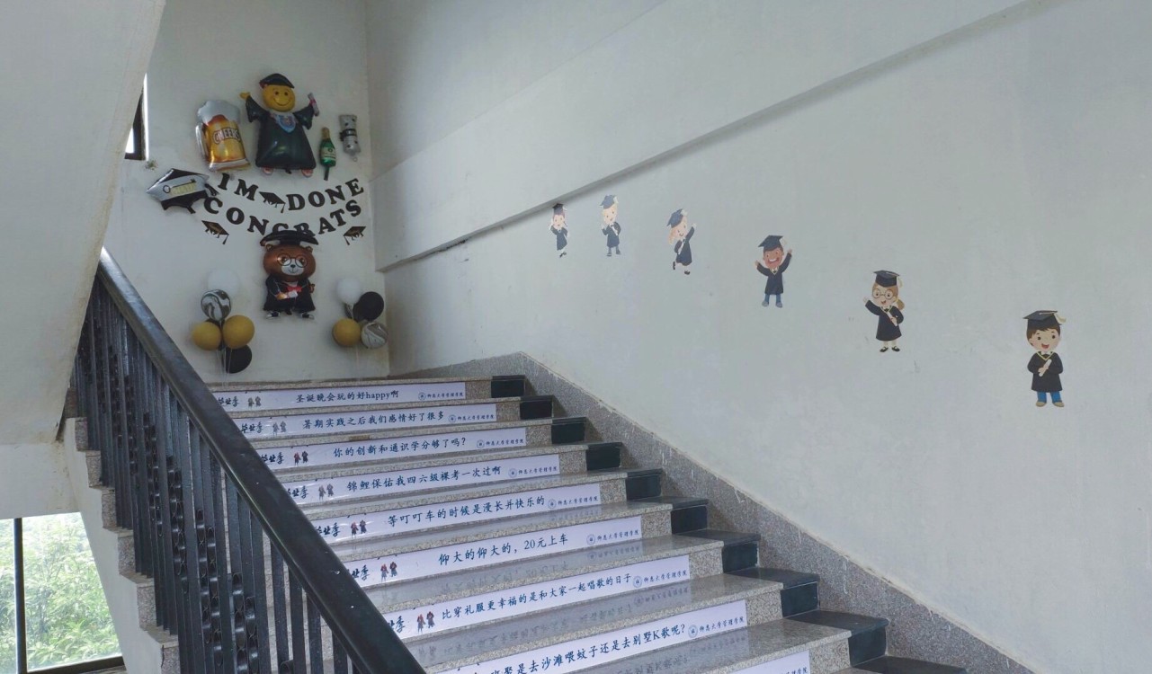 为了让beat365官方网站2019届毕业生留下美好回忆,近日,beat365官网学生会于第一教学区共和楼4-5楼楼梯精心布置了回忆走廊。