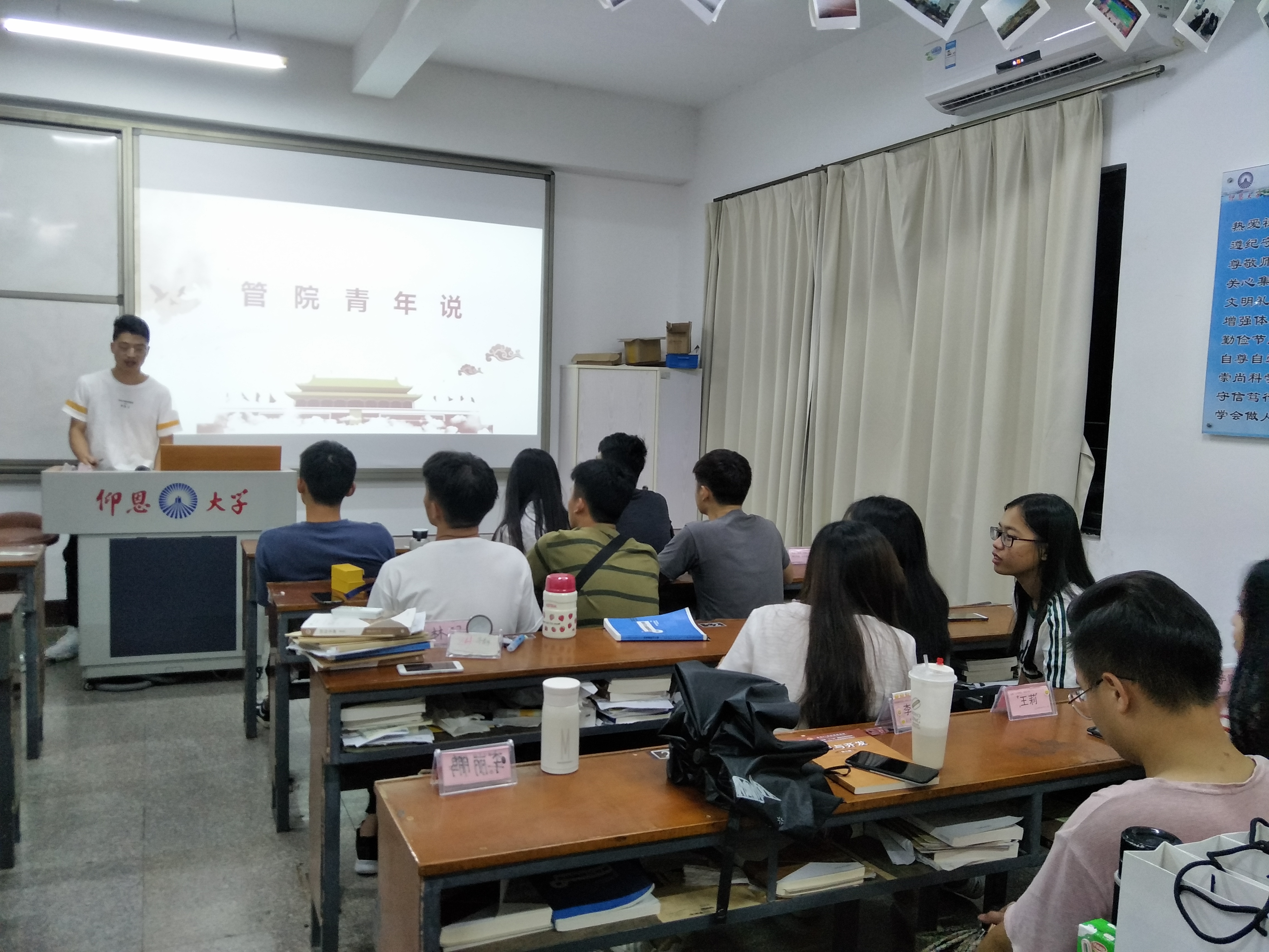 活动现场 通过举办此次管院青年说活动,使同学们对未来的就业前景和方向有了明确的认识,对以后的学习生活有了更多可借鉴的经验,有利于让同学们坚定信心,为自己的未来做好规划,从容应对以后的大学生活,摆脱象牙塔的束缚,找到自己的价值认知,从而形成正确的就业观、价值观和人生观。(张绣婷/图文 审核:杜心田)