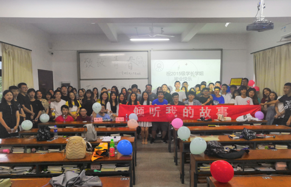 6月24日号下午,公共管理系于共和楼408举办送大四交流会,现场的走廊桌椅摆满了气球,写满了对大四毕业生的祝福。
