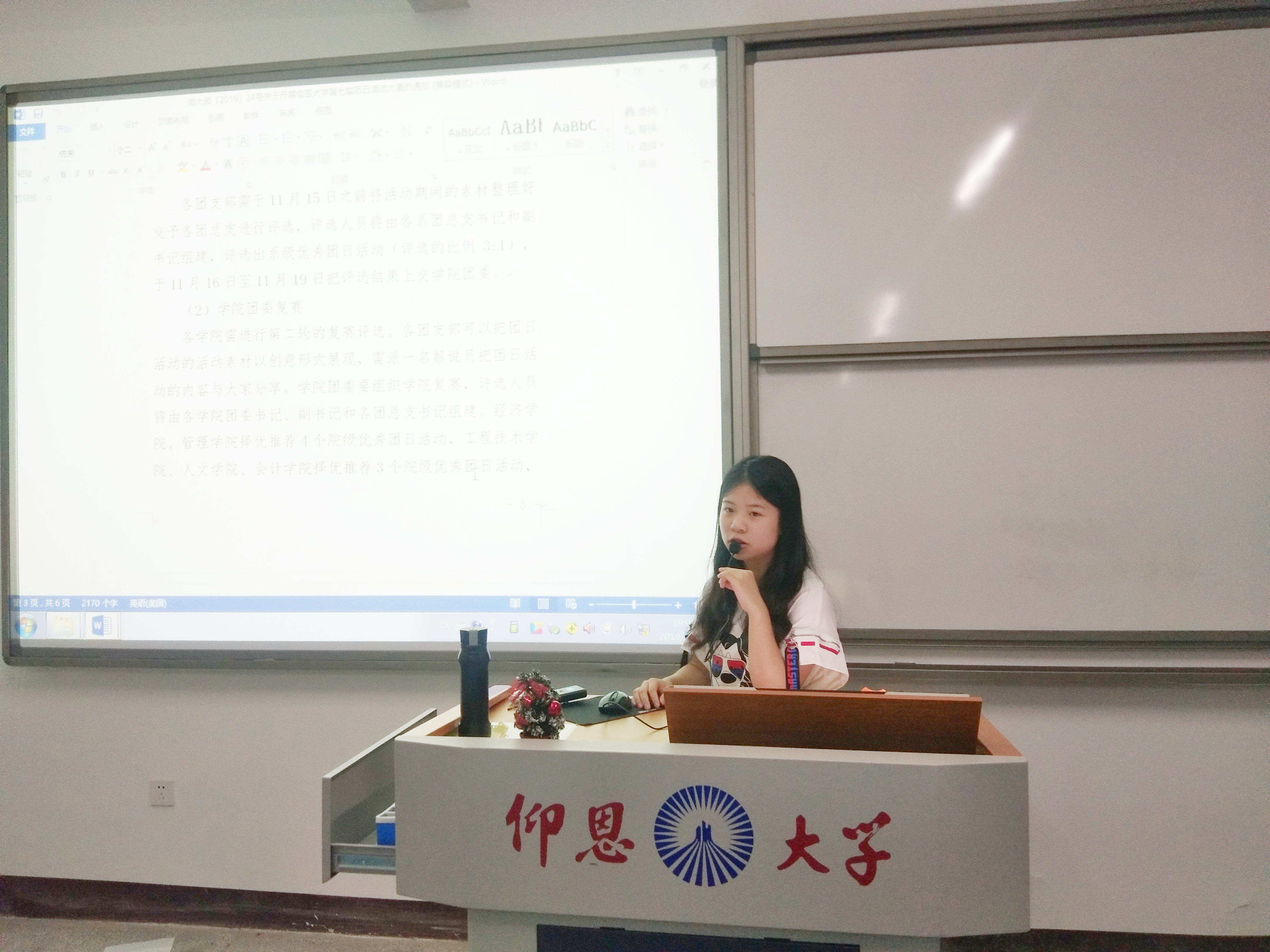 10月13日晚,2019级新生班级团支书培训活动在吉龙楼205举行。本次活动由院团委组织部部长林伟杰主讲,并邀请2018级优秀团支书代表余绮雯分享经验。大一各新生班级团支书参加培训。