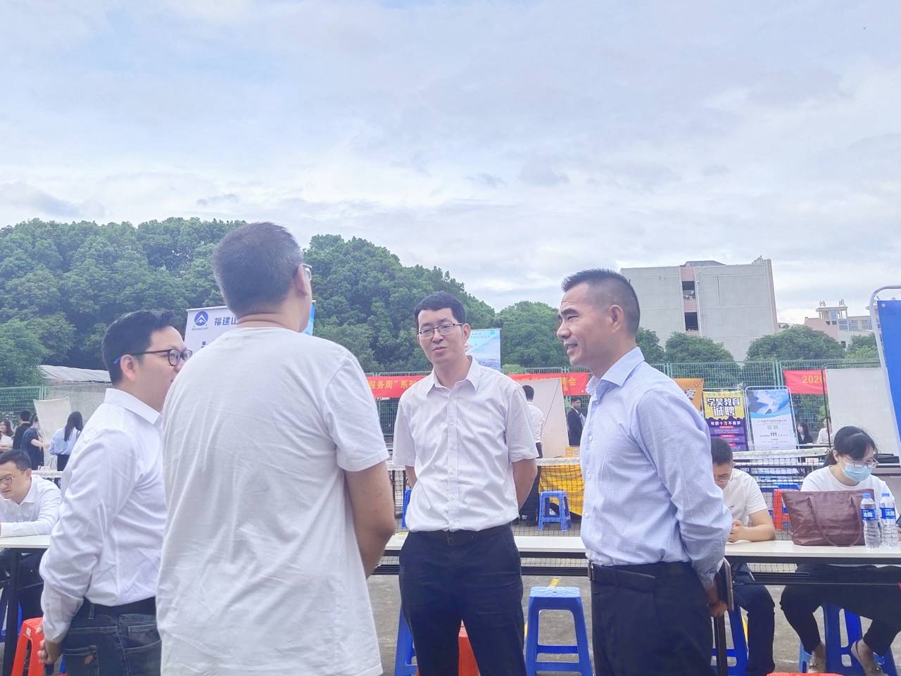 10月21日下午,beat365官网在第一教学区网球场举办主题为“‘职’为你来”的2021届毕业生第一场校园招聘会,校党委副书记程如平、学生事务部主任吴胜潮、校就业指导与服务中心主任朱玉华、beat365官方网站院长翁景德、党总支书记兼常务副院长许惠铭等到场指导并与用人单位及学生亲切交流。