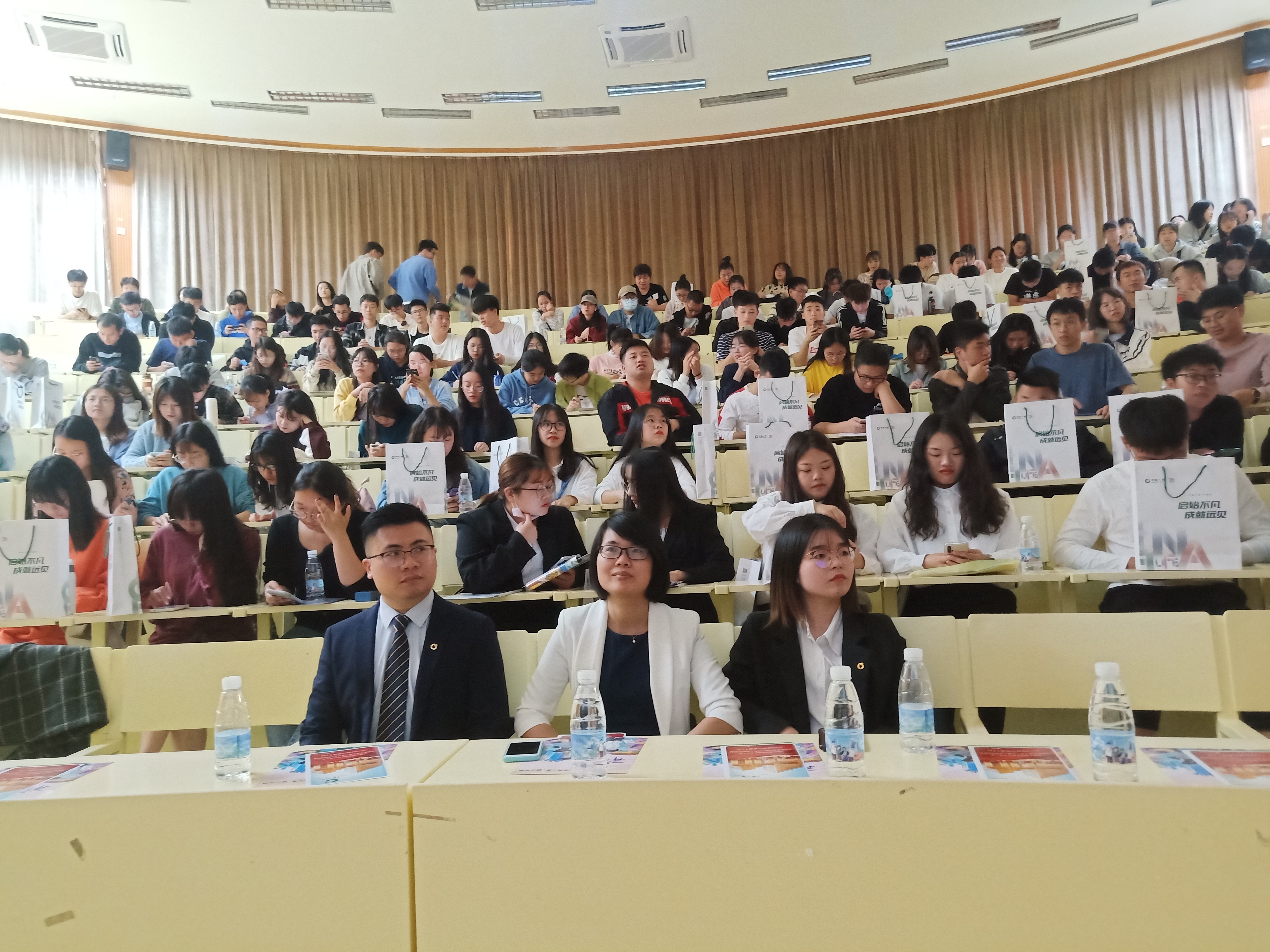 活动伊始 此次招聘宣讲会邀请了中国人寿财产保险股份有限公司晋江支公司朱燕清副总经理和晋江区域许簪波总经理以及赖素蓉部经理等到现场进行宣讲招聘。活动伊始,赖素蓉女士针对中国人寿保险股份有限公司的发展历程以及员工福利等进行相关介绍,并与同学们进行了互动问答。现场氛围融洽轻松,并伴随着热烈的掌声。接下来,许簪波先生讲诉了自己的目标和理想激励着同学们勇敢的追求梦想。答疑解惑环节,同学们积极举手发言,获得了由中国人寿精心准备的小礼品。最后,许簪波先生告诫同学们在未来工作要做到一下几点:1、每天充满积极阳光的心态;2、一定要自主自发的去学习;3、但凡任务下来尽全力去完成。随后,朱燕清讲解了岗位的需求,并用校训勉励同学们学会做人做事。