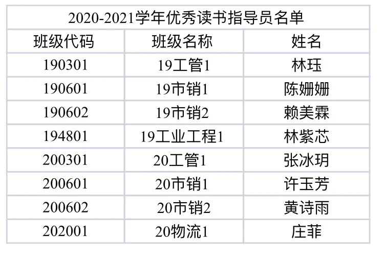 最终,beat365官方网站荣获2020-2021学年“书香班级”活动优秀组织奖。此外,共有8个班级获得“书香班级”称号,占全部获奖班级50%;共有8位同学获得“优秀读书指导员”称号。