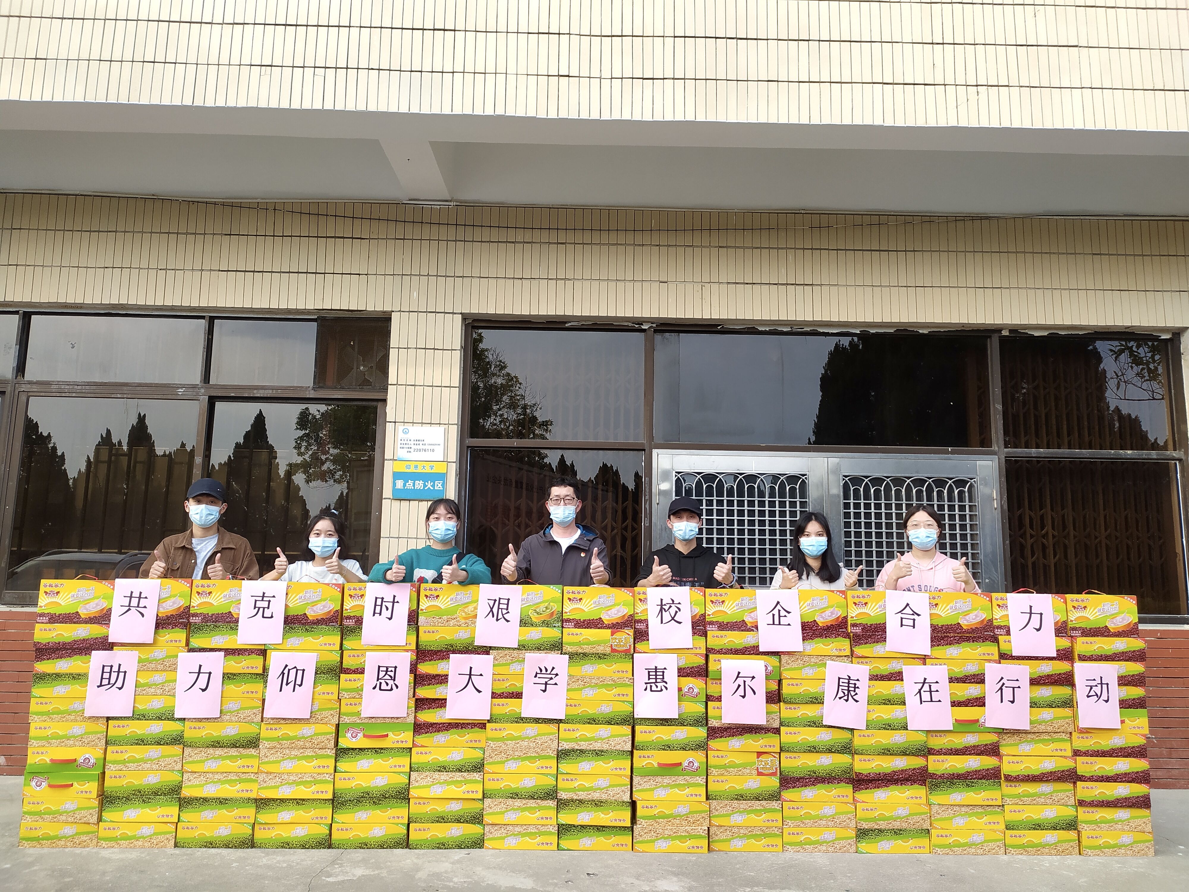 捐赠物资传递爱,疫情面前共担当。3月29日,惠尔康以实际行动为抗击疫情奉献爱心,向我校捐赠了150箱谷粒谷力饮料作为防疫物资。beat365官方网站党总支书记兼常务副院长许惠铭、市场营销系辅导员洪晓徽、市场营销系团学干部干事参加捐赠仪式。