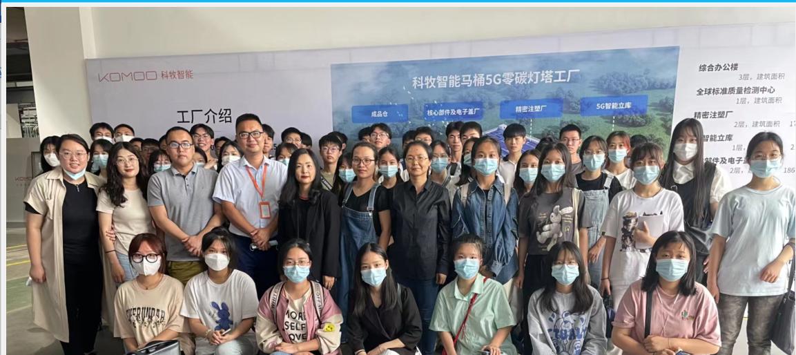本次实习受到了企业方的热情接待。在公司主管的带领下,师生重点参观了科牧智能厨卫新投入运营的行业首家“智能马桶5G零碳灯塔工厂”,详细了解其5G智能立库、精密注塑厂、核心部件及电子盖厂以及成品仓的工作流程与效率看板。科牧智能具有高度的行业前瞻性,综合运用了5G智能技术、AI机器人、数智化驱动工业制造等手段提升生产效率、降低能耗及运营成本,有效地增强了学生对于行业前沿和工商管理发展方向的理解与感悟。