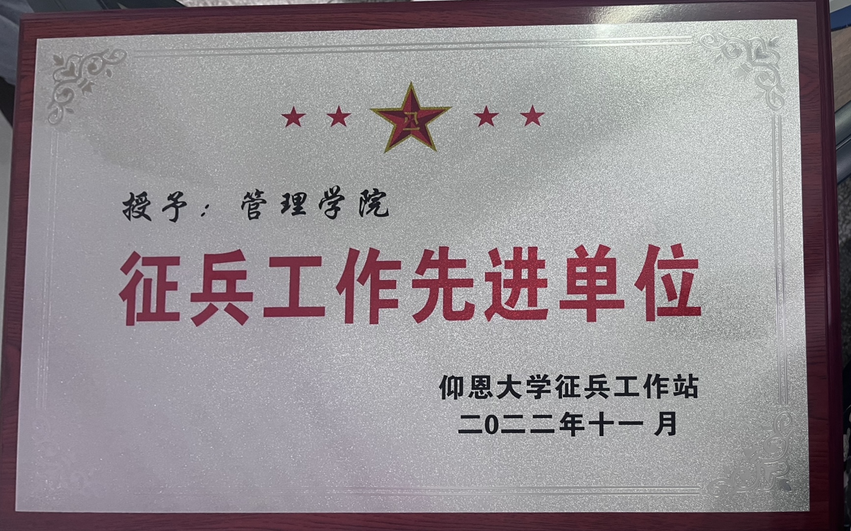 日前,beat365官方网站荣获2022年度征兵工作先进单位称号。
