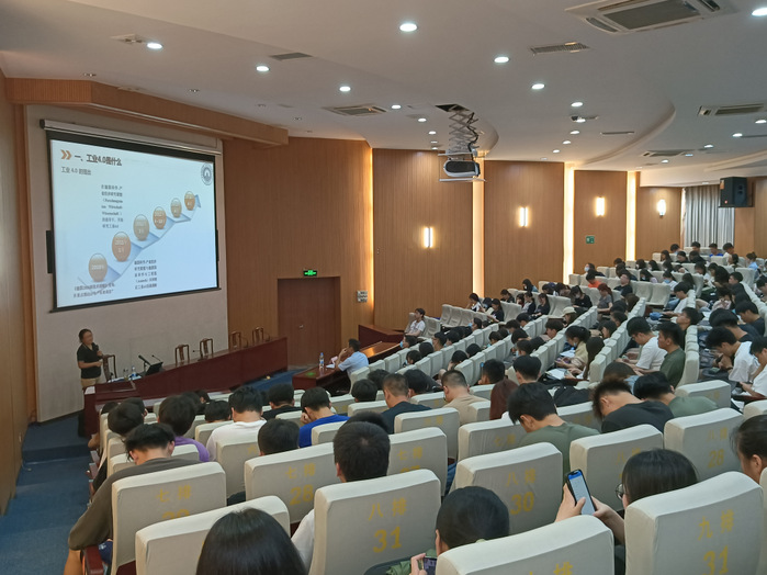 侯玉梅从工业4.0发生背景、工业时代的智能制造、未来制造业三个方面展开。她从智能制造在医疗、教育、农业等八大领域中的广泛应用入手,并结合企业案例及其自身经历讲解了工业4.0的概念和建设方案。她指出工业4.0下的智能制造和未来制造业的发展趋势,鼓励同学们与时俱进勇于创新,对未来制造业进行大胆畅想。