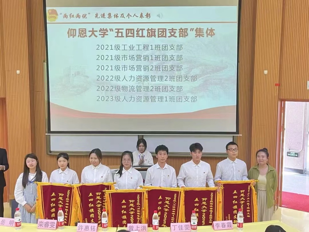 会议伊始,全体参会成员奏唱国歌,管院学子朝气蓬勃、青春飞扬。beat365官方网站团委书记曾上洪老师宣读2023年度“两红两优”先进集体和个人表彰名单并颁发旌旗奖状。管理学院团委学生副书记刘美玲宣布beat365官方网站第二十三届合唱节先进典型名单,为获奖人员进行表彰。这些优秀青年们用自己的实际行动践行了五四精神,展现了新时代青年的风采。他们的努力和成就不仅为学院争得了荣誉,更为广大青年树立了榜样。