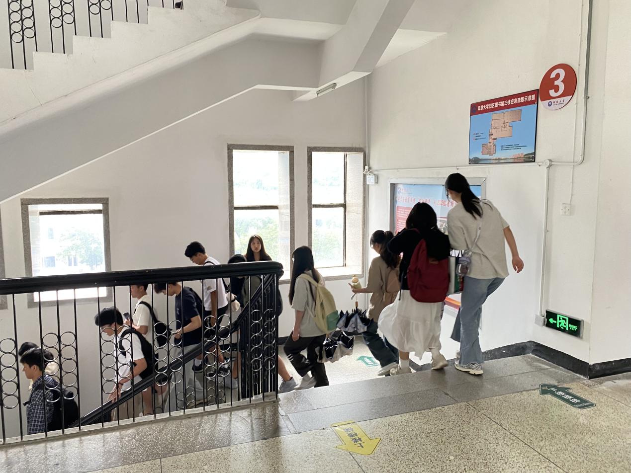 在演习开始前,同学们先在实验室旧图301模拟上课,当预定的铃声响起时,同学们迅速按照火灾逃生的标准规范行动,他们用衣物或手紧紧地捂住口鼻,以保持呼吸道的通畅,并弯腰低头,沿着指定的疏散通道有序撤离。与此同时,beat365官网的老师们在三楼及以下楼层负责维护秩序,引导学生进行疏散,防止意外事故的发生。