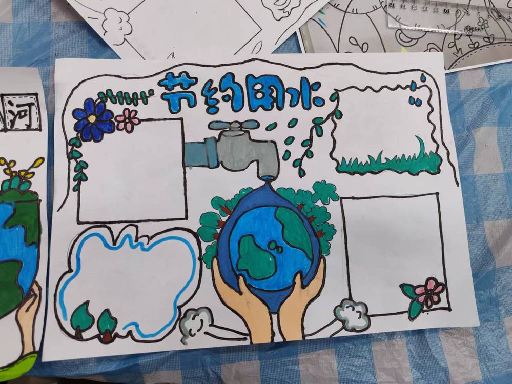 图2 小朋友绘画的爱河护河手抄报