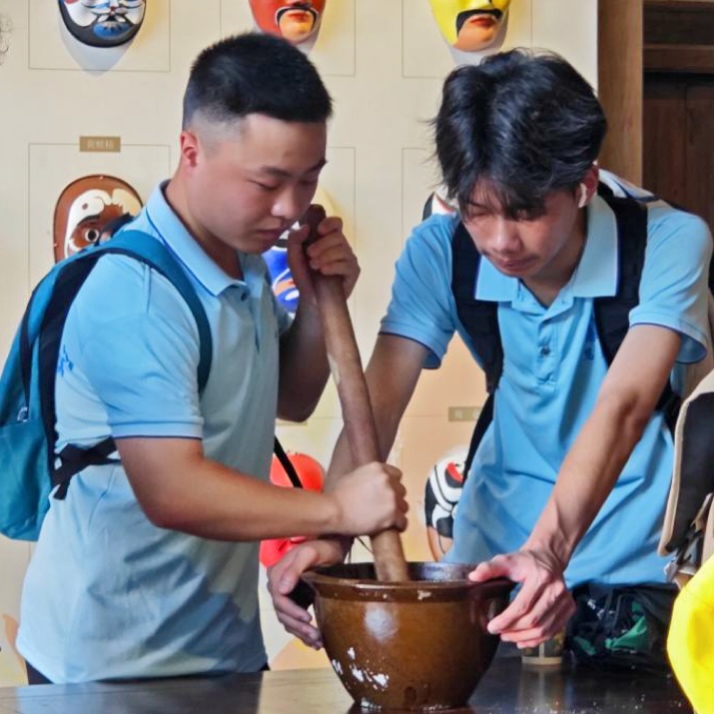 修老师解说完后带领着实践队队员们来到擂茶体验处,队员们在老师的指导下亲自动手体验了如何制作擂茶,在这个过程中,队员们都体会到了擂茶制作工艺的独特魅力,也更加珍惜这来之不易的成果,在之后也是更加珍惜的去品尝,回味无穷。