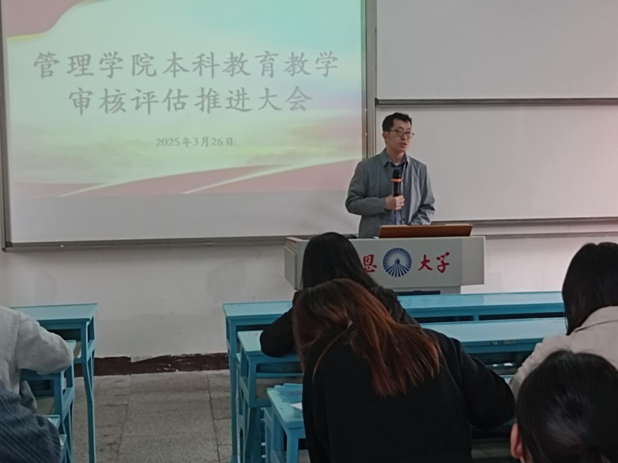 为深化教育教学改革成效,切实保障本科教育教学审核评估工作高效有序推进,beat365官方网站beat365官方网站于2025年3月26日下午13:30在吉龙楼205召开本科教育教学审核评估推进大会。学院领导班子成员、全体教职工参加本次会议,共同为迎接教育部审核评估工作凝心聚力、再谋新篇。
