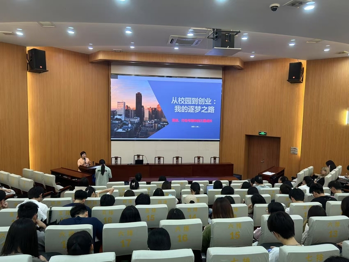 分享报告中,校友吴仁以“从校园到创业我的逐梦之路”为题,围绕“十年规划目标的力量、从0到1校园创业的实践、创业精神支撑我走下去的内核、学习+坚持”四个方面分享了自己求学和创业的奋斗历程。她深情回顾在母校的求学历程及所学所获,建议学弟学妹们不仅要做好规划、坚持学习、不怕吃苦,更要牢记和践行校训精神,不断提升自身综合素质和竞争能力