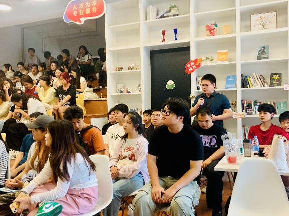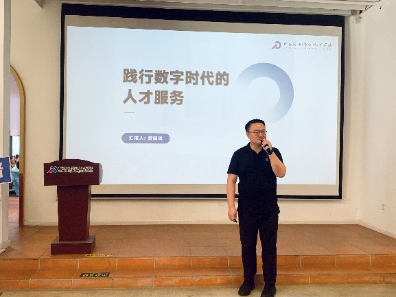在主题分享环节,曾总以《践行数字时代的人才服务》为主题,向同学们分享了人力资源行业发展趋势,并介绍了市场的整体情况,帮助同学们更加全面地了解人力资源服务行业发展动态与职业机会。随后,同学们围绕职业规划、岗位选择、行业发展等热点问题踊跃提问,工作人员结合行业实践进行一一专业解答。