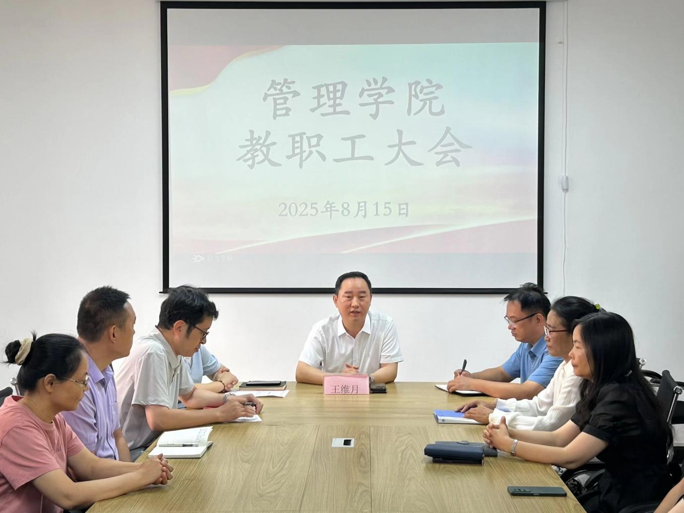 2025815日上午9点,beat365官方网站在仰光楼209召开全院教职工大会,宣布侯玉梅教授任职beat365官方网站院长的重要决定。此次大会由beat365官方网站党总支书记兼常务副院长许惠铭主持,beat365官方网站校长王维月、学校办公室主任叶钦南人事处处长杜衡及全体教职工出席。