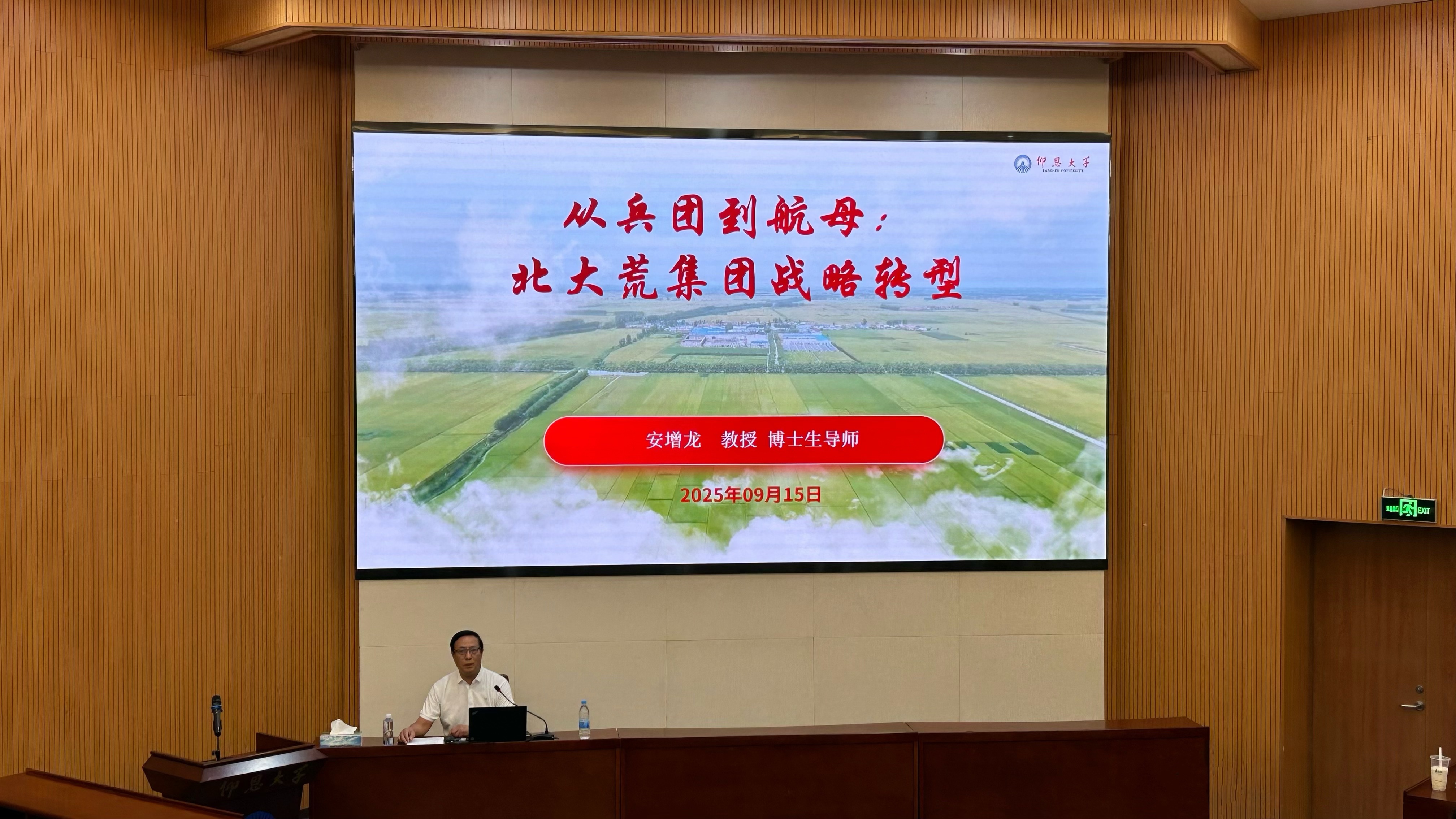 讲座中,安增龙教授围绕 “北大荒:维护国家粮食安全的压舱石”“管理历程:从军垦拓荒到现代化农业航母”“管理特质:精神引领、高组织化、智能化与全链整合” 三部分展开分享。他以通俗的语言与详实数据,在介绍“何为北大荒、哪里是北大荒”及北大荒集团概况时,清晰凸显其维护国家粮食安全的压舱石地位,让师生对北大荒的战略价值形成直观认知。在讲述管理历程时,他按时间线梳理 1947-1976年初创与军垦时期的艰辛奠基、1976-1997年转型改革的荒原涅槃、1998年至今集团化与现代化的跨越式发展,生动展现北大荒的蜕变轨迹。在剖析管理特质环节,安教授深挖“从北大荒到北大仓”的艰辛历程与精神密码,深刻阐释北大荒精神的内涵和引领核心作用;解读军事化高效组织体系的运作优势;介绍智能化技术与全产业链整合的发展实践,全面呈现北大荒的管理内核。