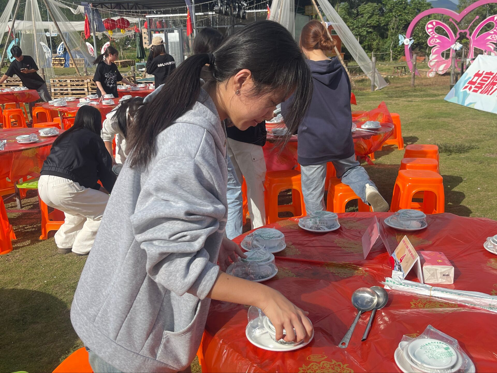 图1 党支部成员摆放碗筷