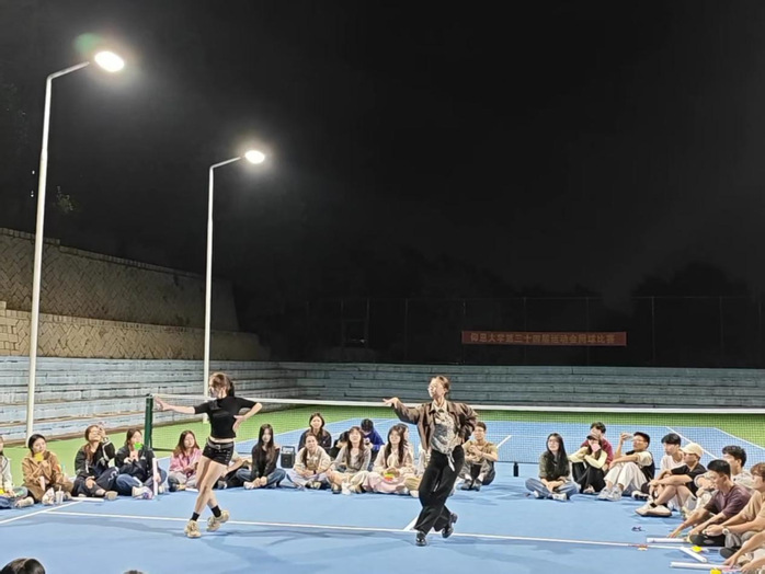 活动伊始,谢若璟同学首先对新生干事的加入表示欢迎,并指出本次活动在游戏设计与环节安排方面进行创新,巧妙地将提升参与度与增强趣味性有机融合,力求为大家带来一场别开生面的体验。在才艺展示中,各部门干部依次登台,呈现了舞蹈《gentleman》、歌曲《日不落》《我记得》、舞蹈串烧等精彩节目,展现出集体的活力与创意,现场气氛热烈。游戏环节设置了“数字炸弹”、“添字生花令”、“动词加料局”、“反向指令”等多项内容,参与者们通过团队协作完成游戏,在紧张有趣的氛围中展现出较强的互动性与挑战性。
