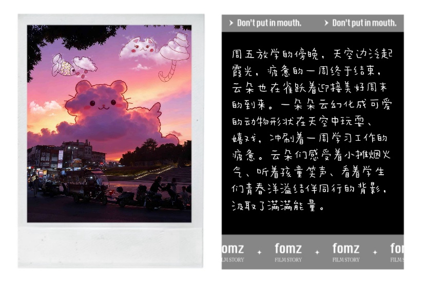 活动依托线上平台开展,吸引了近两百名同学积极参与。本次活动鼓励同学们用镜头捕捉校园上空的云卷云舒,并以涂鸦彩绘的形式为其赋予创意与故事,将内心的焦虑、期待、宁静或喜悦等情绪转化为一幅幅具象的画面。作品附带的创作灵感说明,不仅记录了当下的情绪背景,也展现了同学们对自我内心的深刻觉察。