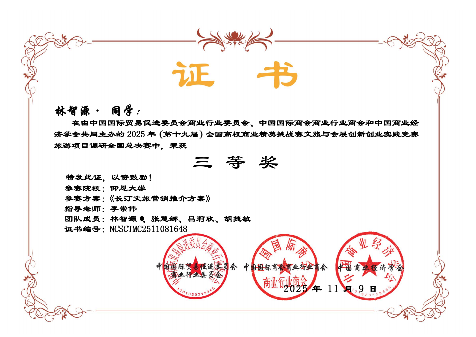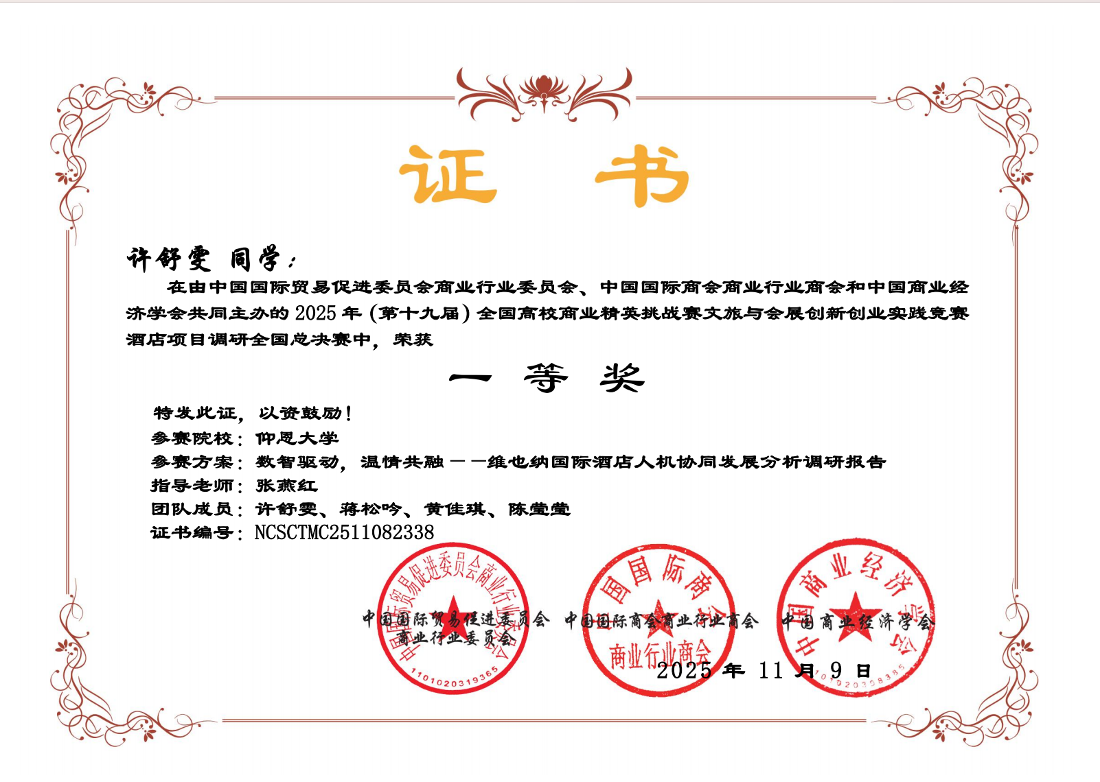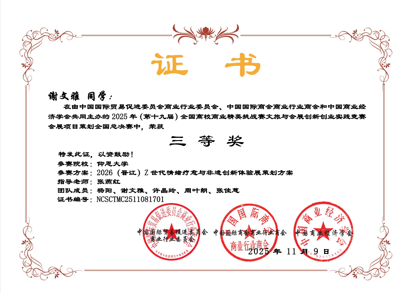本次竞赛由中国国际贸易促进委员会商业行业委员会、中国国际商会商业行业商会、中国商业经济学会联合主办,已列入《beat365官方网站2025年学科与技能竞赛项目一览表》,并认定为AB类榜单赛事,吸引了全国多所高校的优秀团队同台竞技。指导教师从项目选题、方案打磨到模拟答辩进行系统辅导。参赛学子围绕文旅融合、会展创新等核心主题,结合专业知识设计兼具实用性与创新性的实践方案,充分展现了管院学子的专业素养与创新能力。